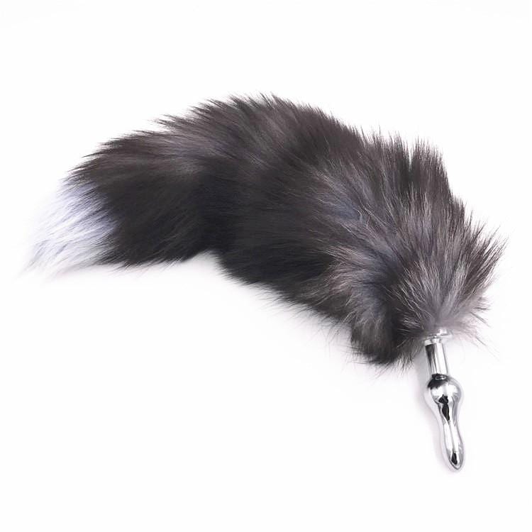 15" Dark Fox Tail with Veteran Style Plug and Extra Vibrator